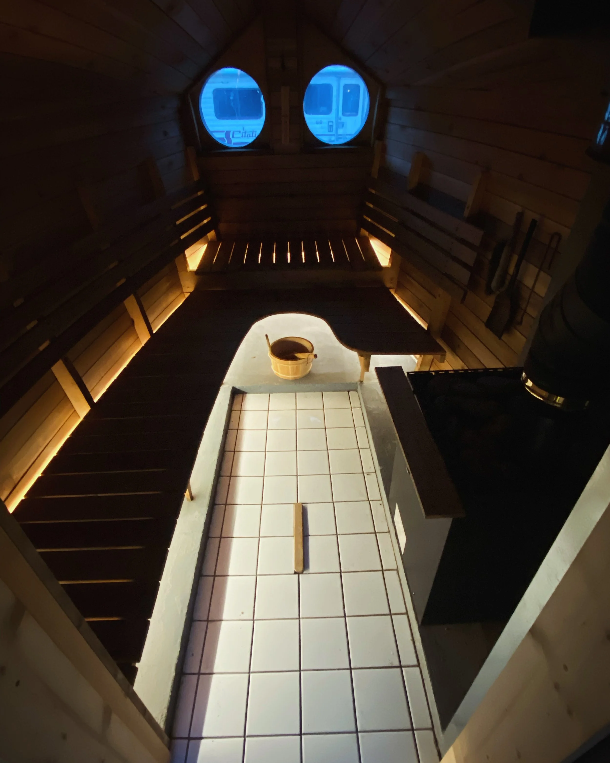 There really are any number of ways to build a sauna, and almost all of them are easier than retrofitting an old sailboat on a trailer. The original blue sailboat, as shown, retained little of its original interior. After stripping it to its bones, I began the design and construction in the Summer of 2020, a project which in part served as a distraction from the uncertainty of the pandemic unfolding across the globe at that time.